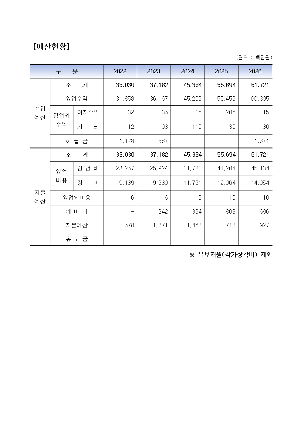 경영정보 공시 예산현황